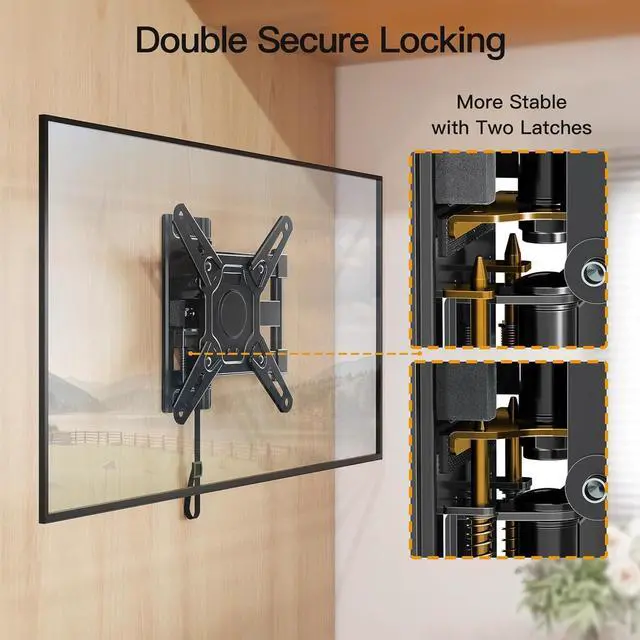 Patented Locking Mechanism: Unique designed with 2 locking pins, this RV bracket keeps your TV stable and secure, even on rough roads. Made from heavy duty steel, it offers anti-vibration properties and long-lasting durability for all your travels