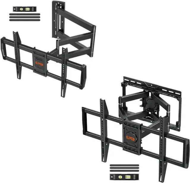 Flexible Viewing Angle: Articulating TV wall brackets YD3023 tilt +5°/-13° to reduce screen glare, level +/-3° after installation to eliminate error and retract back to 2.4" for a low-profile look. With unique arm clamps design, it lock TV against wall and prevent heavy TV sliding out