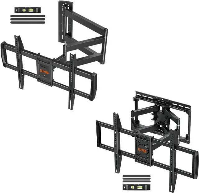 Flexible Viewing Angle: Articulating TV wall brackets tilt +5°/-13° to reduce screen glare, level +/-3° after installation to eliminate error and retract back to 2.4" for a low-profile look. With unique arm clamps design, it lock TV against wall and prevent heavy TV sliding out
