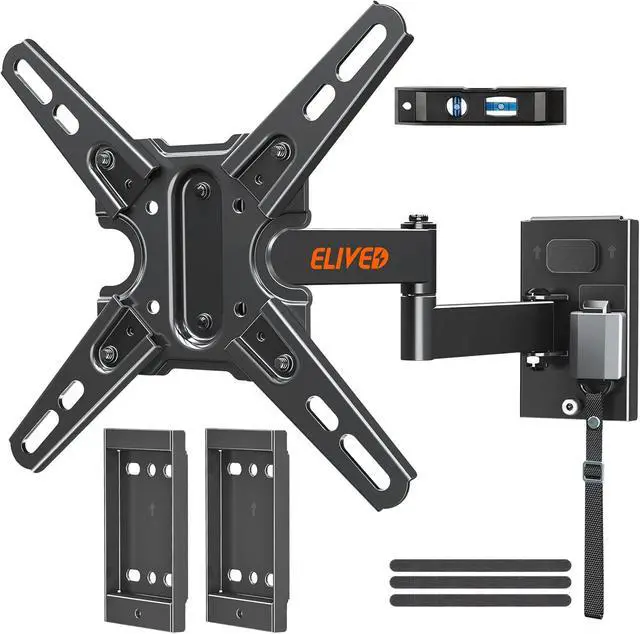 Optimal Viewing Comfort: Enjoy a perfect viewing experience with this full-motion TV mount. It tilts +5°/-15° to reduce glare, swivels +/- 90°, extends up to 14" for flexible positioning. The mount also allows for +/-3° leveling after installation, ensuring the ideal angle for your entertainment