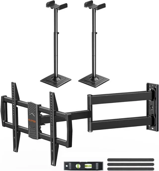 ELIVED Universal Speaker Stands Pair Height Adjustable Max 43.3", Long Arm TV Mount for Most 32-75 Inch TVs, 32" Long Extension Arm Corner TV Wall Mount Holds up to 99 lbs. Max VESA 600x400mm