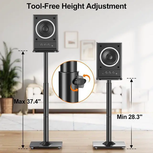 Height Adjustment - Speaker floor standing pair can adjust height from 28" to 37.4" for ear-level listening experience. A great choice for your home theater entertainment system.