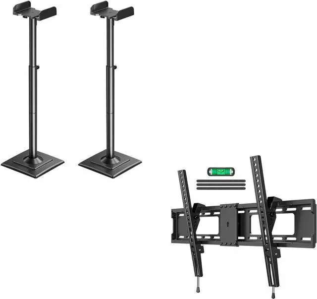 ELIVED Universal Speaker Stands Pair Height Adjustable, Tilting TV Wall Mount for Most 37"-85" TVs with Level Adjustment 24" Wood Studs Max VESA 600x400mm