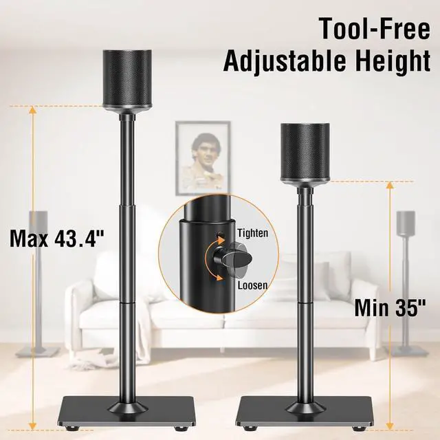 Height Adjustment - This surround speaker stand can adjust height from 35" to 43.4" for maximum ear-level listening experience. A great choice for your home theater entertainment system.