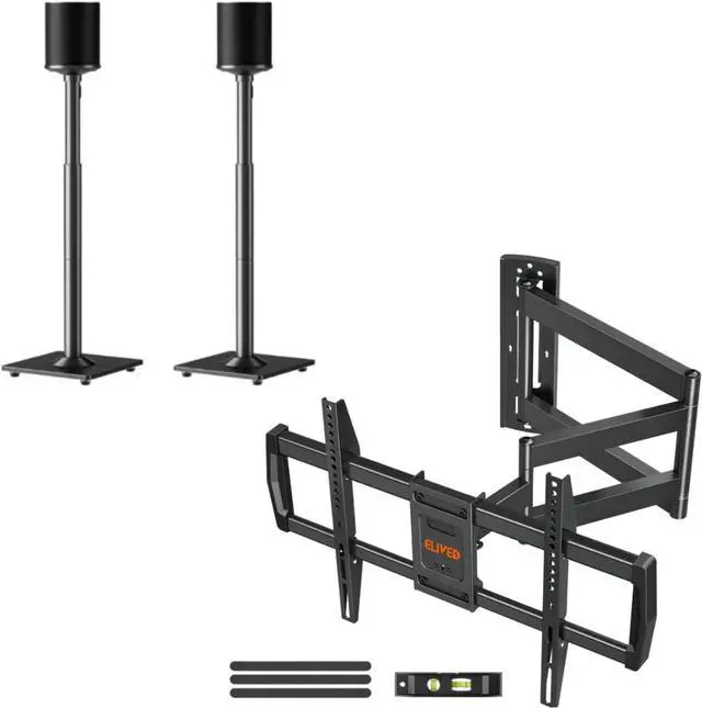 ELIVED Speaker Stands for Sonos Era 100, Long Arm TV Wall Mount for Most 32-75 Inch TVs, 37.9 Inch Long Extension Corner TV Mount 99 lbs. Max VESA 600x400mm
