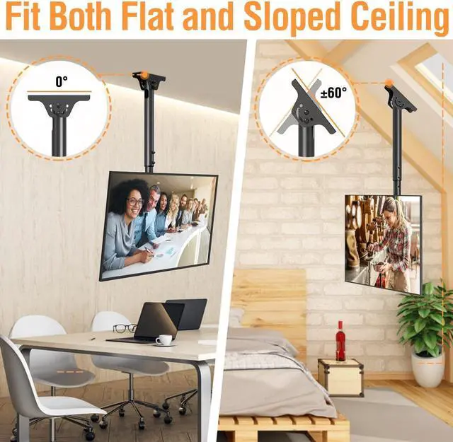 6 Height Adjustment: The ceiling mount TV bracket has 6 positions for height adjustment, suspends TV 20.3 from the ceiling and can extend up to 30.2 to provide better viewing angles and flexibility. Search B0BPY12QVF for YD3016 if you prefer more height extension