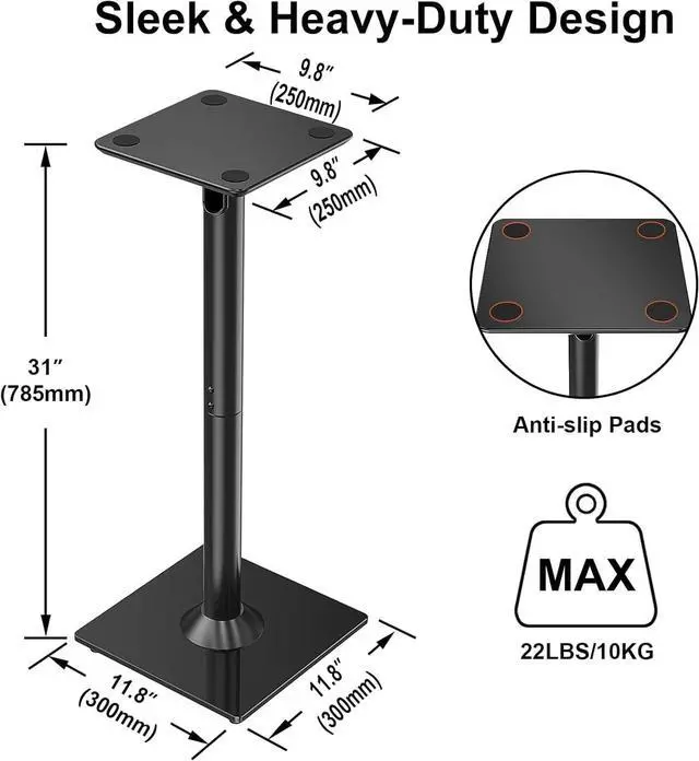 Ideal Speaker Positioning: Speaker stands pair with heavy-duty materials and rubber pads to minimize undesirable vibration to let your speakers deliver pristine, room-filling sound. The speaker stands elevate your speaker closer to the ear level for the best experience