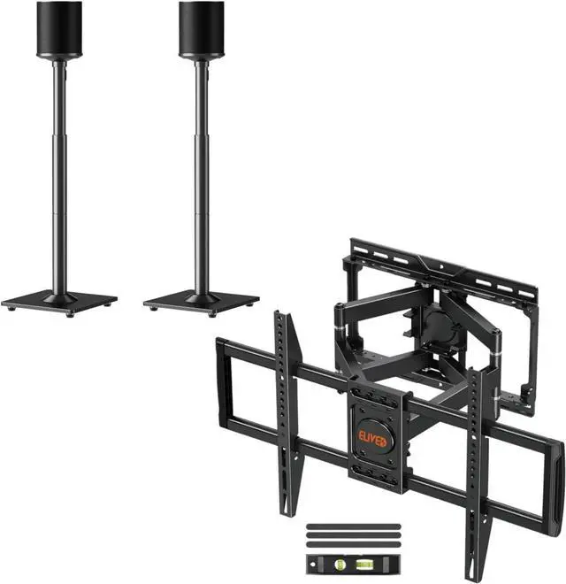 Flexible Viewing Angle - Articulating TV wall brackets tilt +5°/-13° to reduce screen glare, level +/-3° after installation to eliminate error and retract back to 2.4" for a low-profile look. With unique arm clamps design, it lock TV against wall and prevent heavy TV sliding out