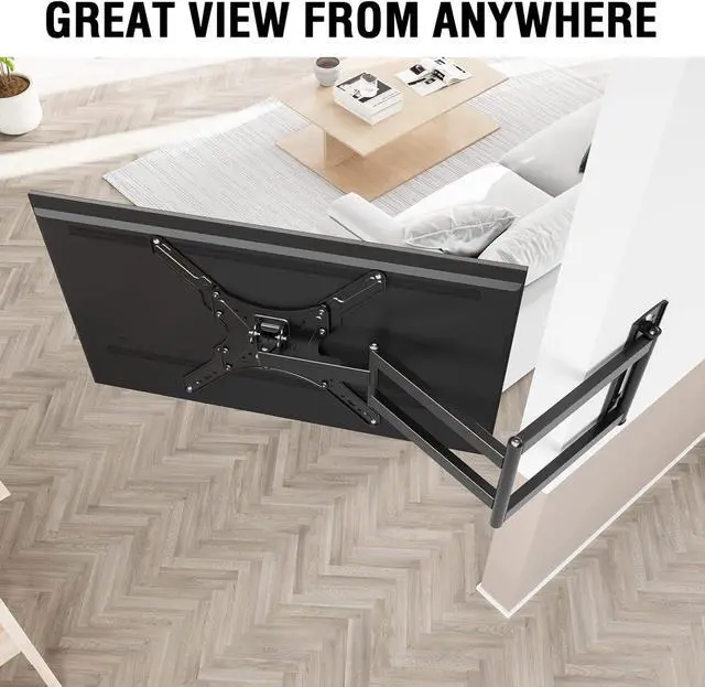 37.4" LONG EXTENSION TV MOUNT - This extra long extension TV wall mount can extend 37.4 from wall to cover more viewing positions. This long arm TV mount can retract 3 to wall for saving space and a clean look. It is an ideal choice for corner placement and you can watch TV anywhere you want.