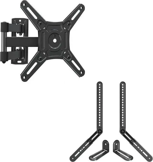 ELIVED Full Motion TV Monitor Wall Mount for Most 14-42 TVs Max VESA 200x200mm up to 33 lbs, Universal Soundbar Mount Adjustable Angle Sound Bar Bracket YD5010