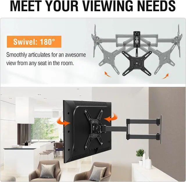 180º Rotation & Swivel Design - With the 180º rotation unique design, the full motion TV mount can easily display in landscape or portrait position to meet your special need. Also, this swivel TV mount can swivel TV 180º to cover any angles in your home for the ultimate viewing experience.