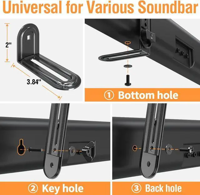 Universal Soundbar Mount: The soundbar wall mount fits soundbars up to15 lbs such as SAMSUNG, POLK, SONY, VIZIO, BOSE, JBL and more sound bars, compatible with most TV wall mounts and TV stands
