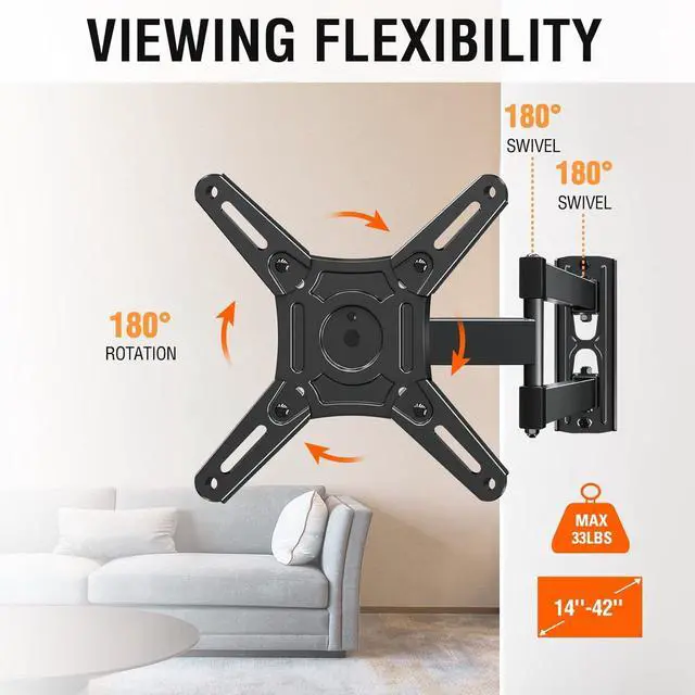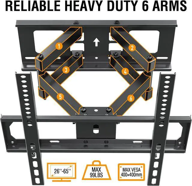 YD1008 TV Wall Mount for 14-42 Inch Curved/Flat TVs, Max VESA 200x200mm and 33 lbs. YD3007 Full Motion TV Wall Mount Fits Most 26-65 Inch TVs, Max VESA 600x400, 99LBS