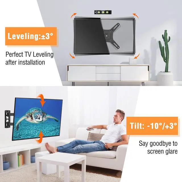 SAVING SPACE - The strong articulating 3-arm structure with cold-rolled steel of YD1008 ensures reliable strength and provides you sufficient swivel angle. Automatic robot welding technology makes the whole TV mounting bracket unit sturdy and has a good appearance. YD3008 Wall mount is low profile (2.87 inches away from the wall).