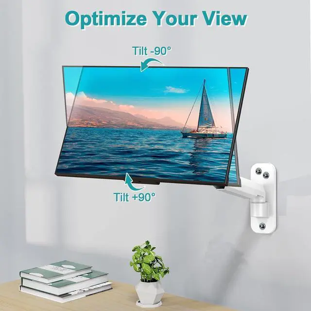 Full Motion Adjustments - Adjustable monitor wall mount arm offers +90° to -90° tilts, 180° swivel, and 360° rotation. This monitor arm extends up to 21.6", making it easy to set the monitor at the optimum angle and position for increased productivity and comfort.