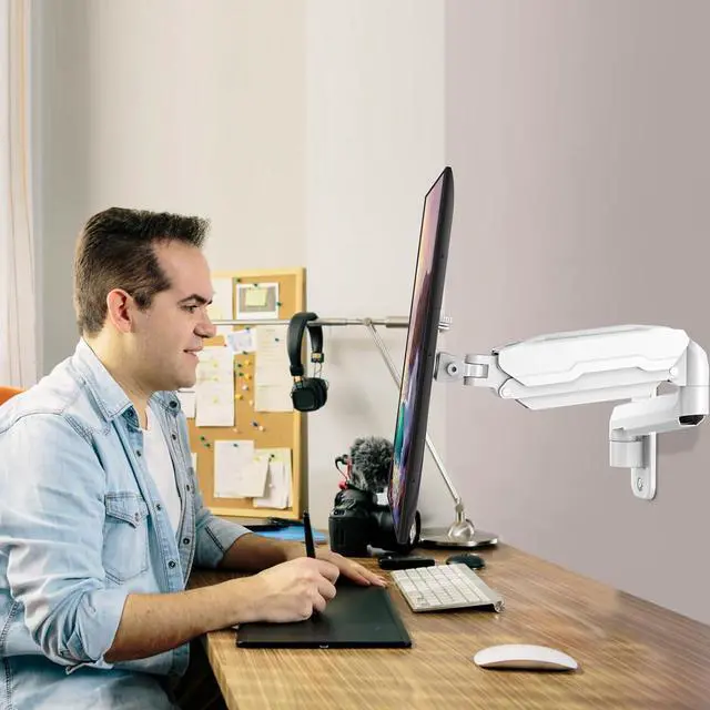Effortless Height Adjustment System - This wall monitor arm is built for thousands of movement by passing 10000-cycle tests, which achieve flexibility and stability than traditional mechanical monitor stand. It can be adjusted to the weight of your monitor creating a suspended free-float effect. Please adjust it according to your monitor weight before use.