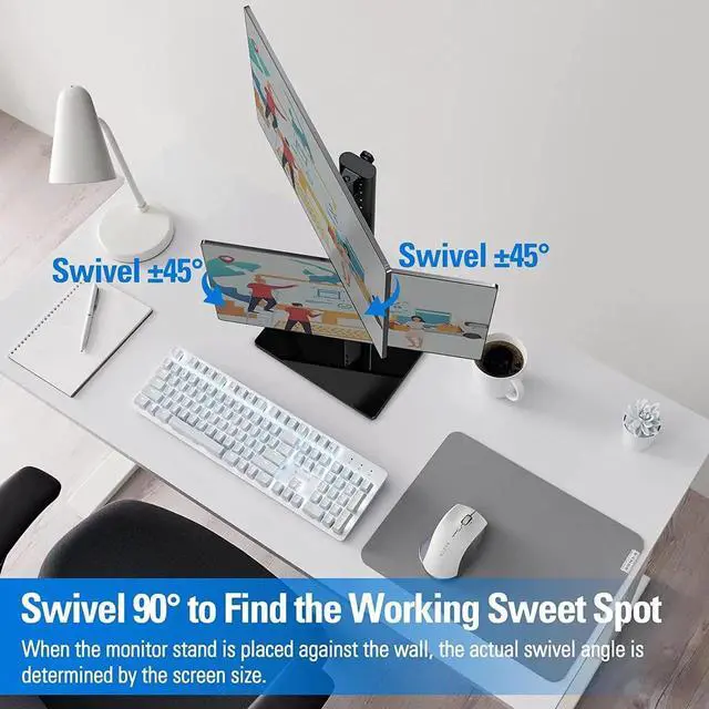 Effectively Monitor Riser - Elevate the monitor up to eye level for a comfortable, ergonomic viewing experience. A wide range of monitor movement enables swivel, rotation, and tilt to match different viewing angle needs. To find your most comfortable sitting position, to reduce stress on shoulders and neck.