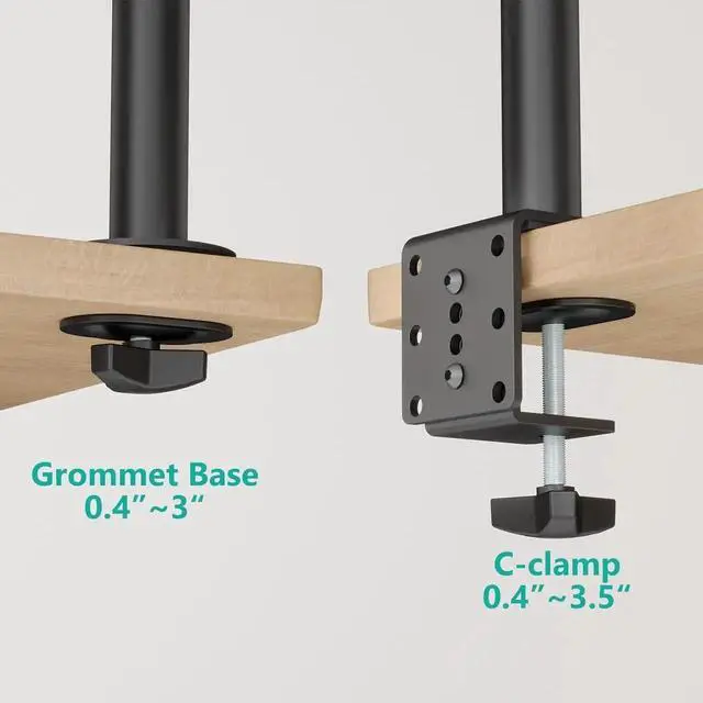 Multiple Options: Two-stage locking system C-Clamp and diameter Grommet-Base, suitable for 3.5 " and 3" thick desks respectively.