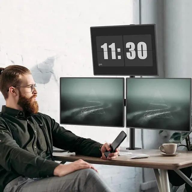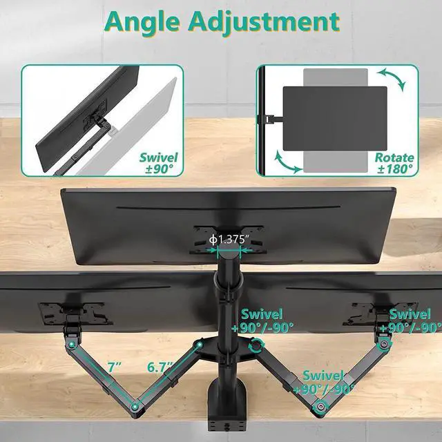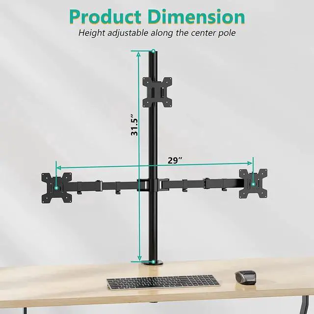 Double Benefits: Monitor arm is easily adjustable on a 31.5 height pole. Double efficiency and productivity by opening up desk space allow working in a more comfortable, ergonomically correct position to reduce neck and eye strain.