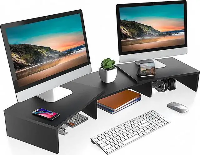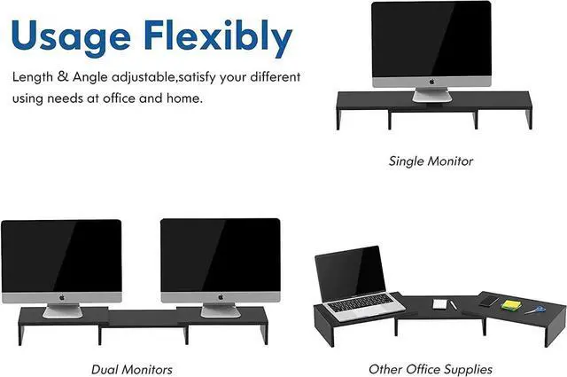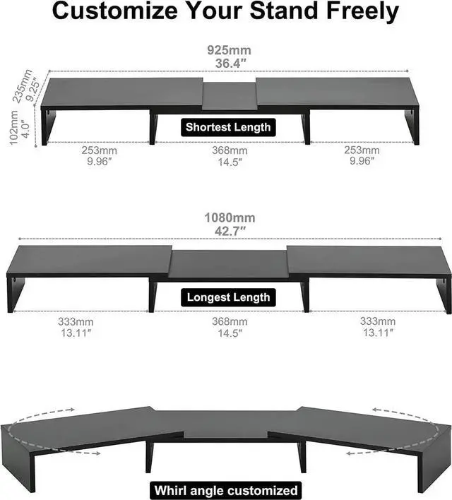 Longer Size with More SpaceAt longest 42.7 inch wide, this laptop riser is big enough to support two monitors. Depending on your setup, you may even have room to place a speaker or another device in the middle. Creates enough space underneath for smaller desk essentials, or to tuck your keyboard and mouse away.