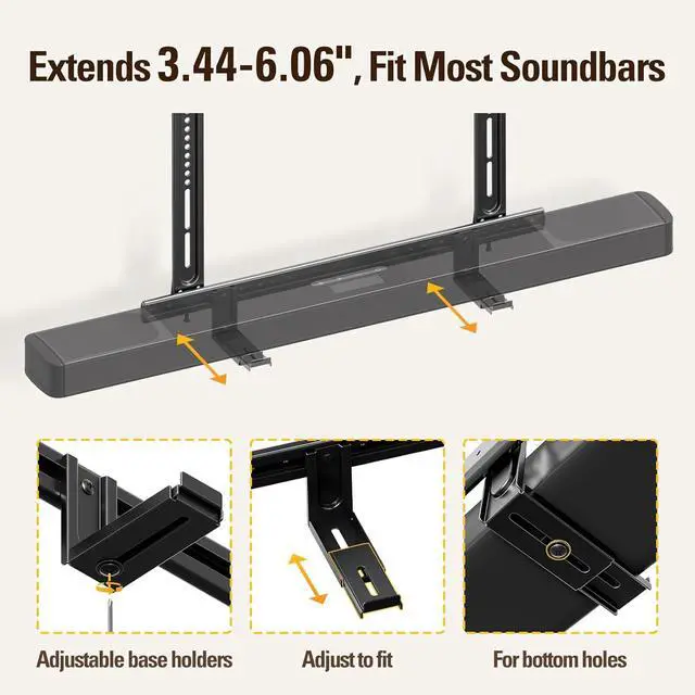 Easy Installation - Secures the soundbar above or below the TV with ease. The teeth on the arm connections lock the soundbar firmly in place, eliminating the need for screw holes in the wall and making installation a breeze.