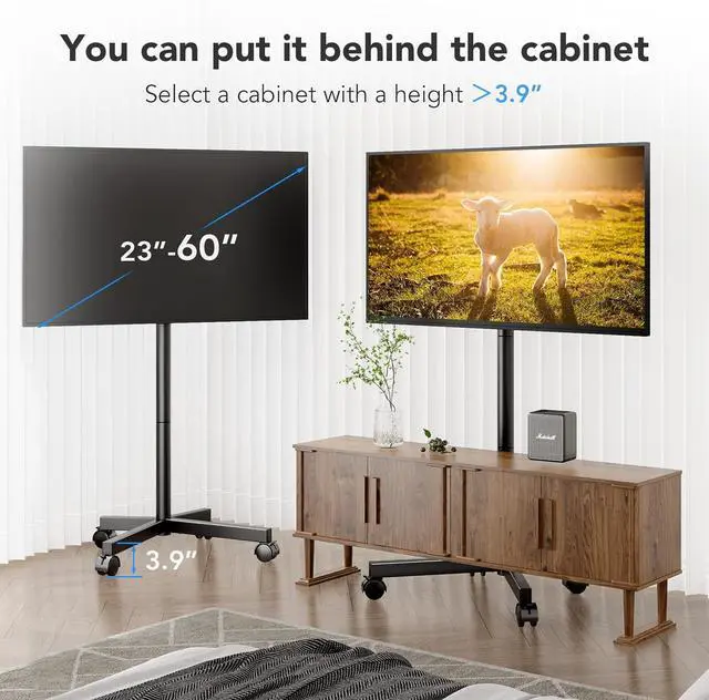 HASSLE-FREE INSTALLATION: A great alternative to mounting TVs on the wall, no drilling process is needed, rolling TV cart will eliminate the dust and noise problems. Instruction manual and labeled hardware is included with the mobile TV stand for fast and easy installation