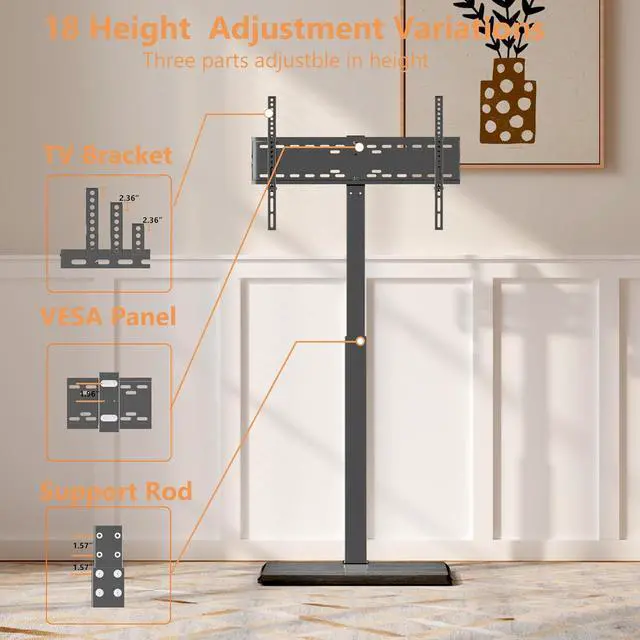 to 62.2 ";: The tall TV stand offers 3-position height adjustment for support bar and TV bracket, VESA panel features 2-position adjustment allow for precise position to suit seating preference for optimal viewing angles.