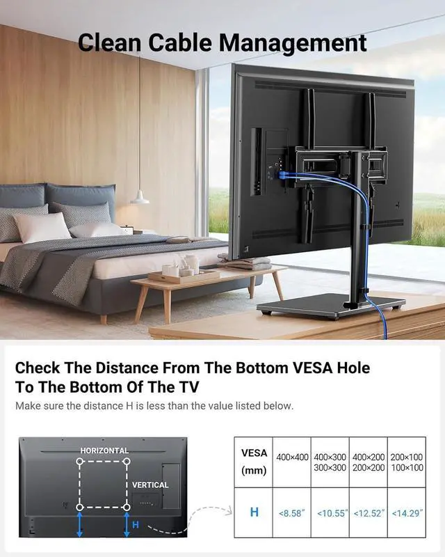 WIDE COMPATIBILITY: Fits most 32-65 inch (including 32' ' 37' ' 39' ' 40' ' 42' ' 43' ' 48' ' 49' ' 50' ' 54' ' 55' ' 60' ' 65' ' ) LCD, LED, OLED, flat screen TVs up to 88 lbs including Sony, Samsung, Vizio, Sharp, TCL, LG, and more. Great solution for the bedroom, game room, classroom, hotel room, or office. Compatible with VESA patterns 100x100mm (4' ' x4' ' ) to 400x400mm (16' ' x16' ' ).