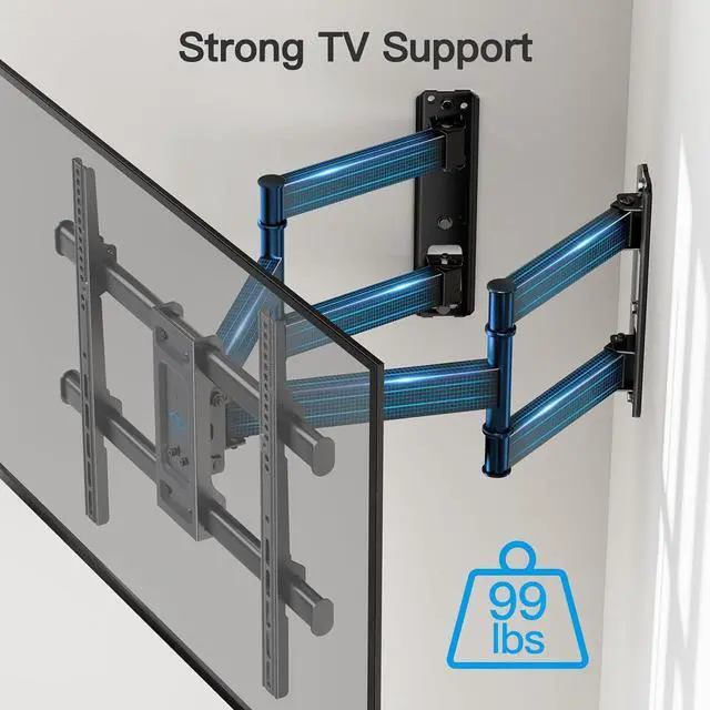 WIDE COMPATIBILITY: Our corner TV bracket fits most 26-60" TVs weighing up to 99lbs/45kgs. Suitable for VESA mounting hole patterns including 200x100mm, 200x200mm, 300x200mm, 300x300mm, 400x200mm, 400x300mm, 400x400mm. If your wood stud spacing exceeds 16 inches, please refer to the 16", 18", 24" wood stud full motion TV mount PSXFK1.