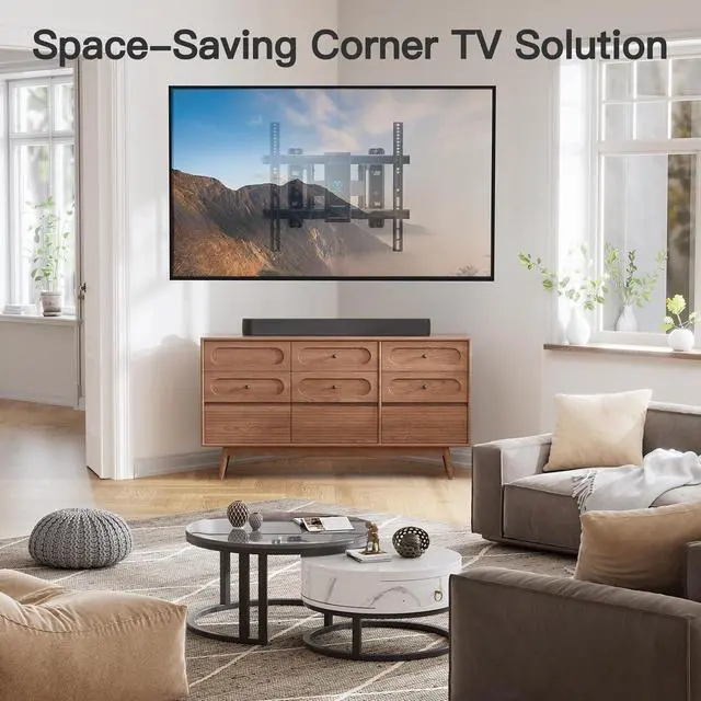 Space Saver: This corner TV wall mount allows for more flexible furniture arrangements and frees up tabletop space for decorations and AV components.