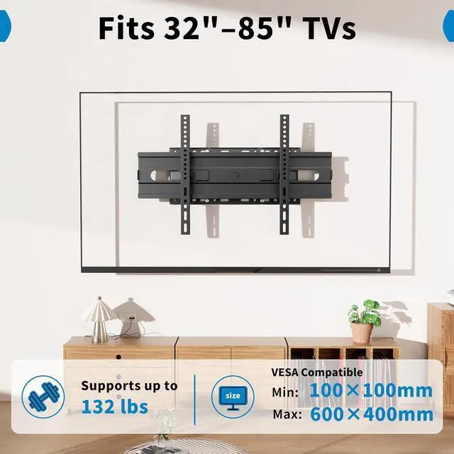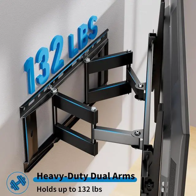 Sturdy Alloy Full motion TV bracket supports 3285 inch TVs up to 132 lbs with zero wobble. Reinforced dual arms and heavy-duty steel construction ensure rock-solid stability. This full motion TV mount is 4x load-verified and suitable for firmly mounting your TV at home or in the office