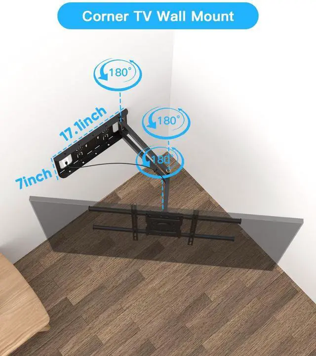 Corner TV Wall MountThis 75 inch corner TV mount' s panel is specifically designed for corner walls, accommodating both concave corner and convex corner wall. It maximizes the utilization of otherwise wasted corner space. When fully retracted, this TV corner mount sits just 2.5 inches from the wall.