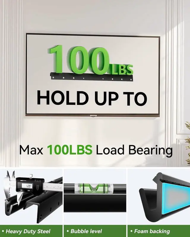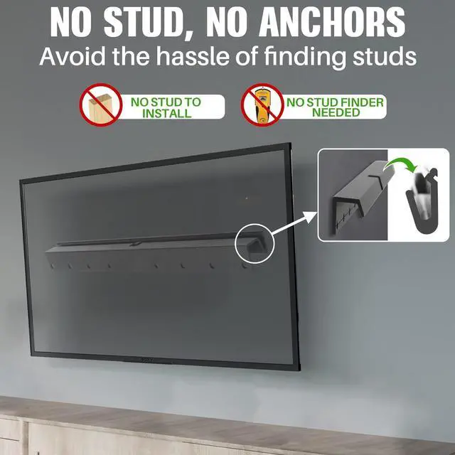Solid Steel Construction: No drill tv mount is made of heavy-duty steel for reliable strength. Keep your expensive equipment safe and secure with this reliable mount that' s 5 times strength test to support up to 100 pounds