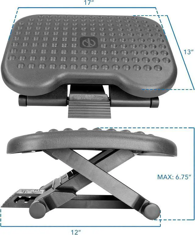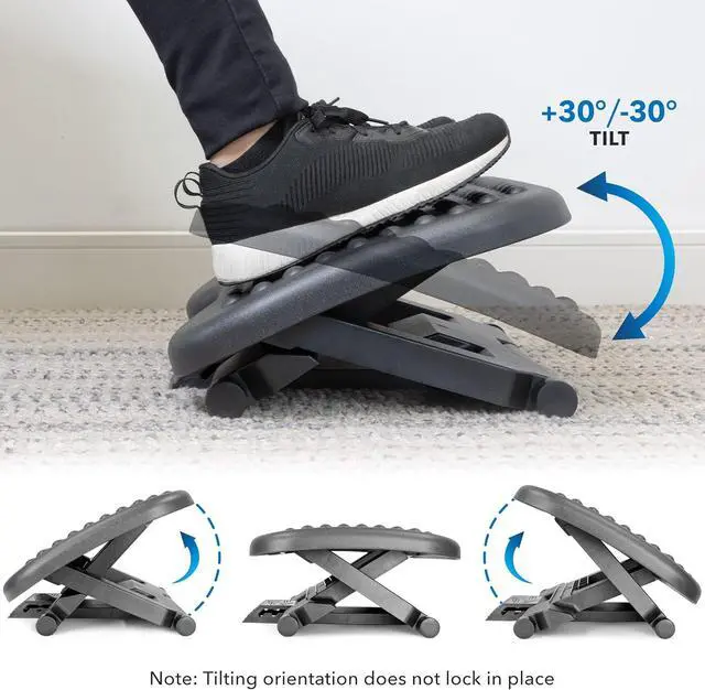 ERGONOMIC UNDER DESK FOOTREST FOR DAILY COMFORT Elevates your feet and legs to promote better seated posture and reduce fatigue during long hours at your office desk or home workstation.