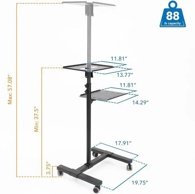VERSATILE WORKSTATION: Equipped with two adjustable trays, enjoy the versatility of mounting more than one projector, laptop or any combination of equipment and devices, saving you time and space.