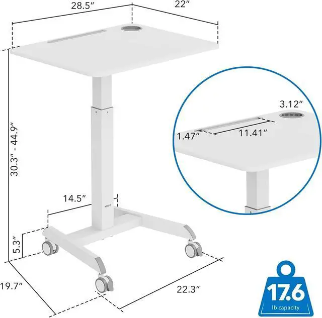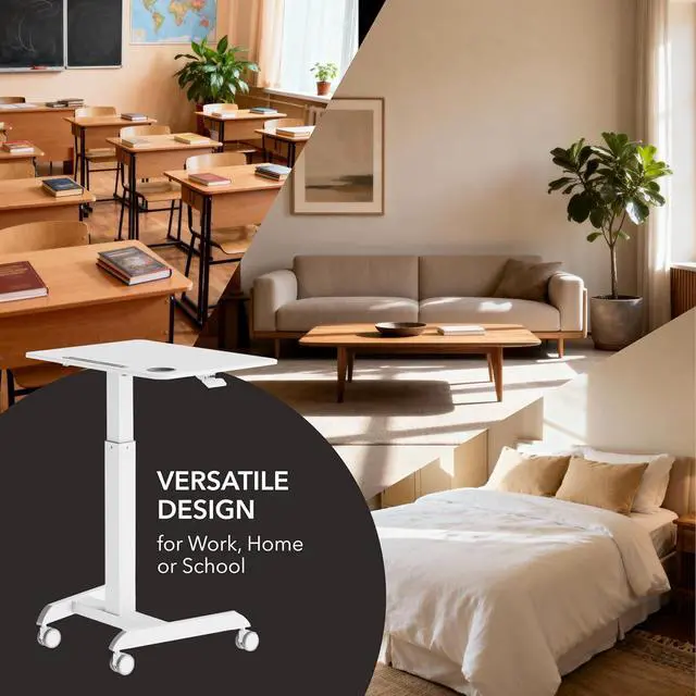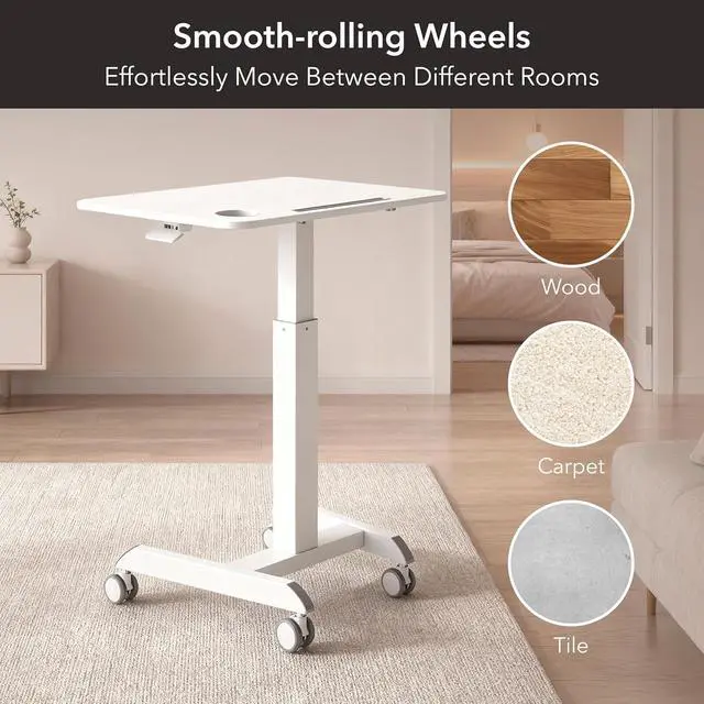 Space-Saving Solution for Small Areas: With a compact 28.5 " x 22" tabletop, this mobile laptop desk is designed to fit seamlessly into small spaces without compromising on functionality. It' s perfect for apartments, dorm rooms, or compact office setups.