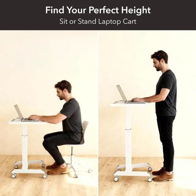 Height Adjustable for Sitting or Standing: Easily adjust the height of the laptop cart on wheels from 30.3 " to 44.9 " for a personalized ergonomic experience. Transition smoothly between sitting and standing to find the most comfortable setup for your workflow.