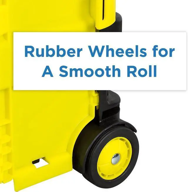 DURABLE & RELIABLE CONSTRUCTION Built with a tough polypropylene body and rust-proof aluminum telescoping handle, this portable cart with lid supports up to 55 lbs and offers 1.2 cubic feet of enclosed storage space.