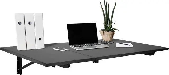 Secure Folding: The triangle structure of the brackets on this wall mounted folding table increases structural stability, providing you with a firm and solid surface. The bracket lever underneath features a single finger click, making it incredibly easy to fold this drop down wall table back down.