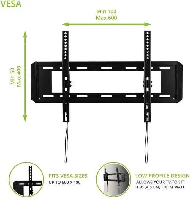 Fits VESA sizes from 100 x 100 to 600 x 400