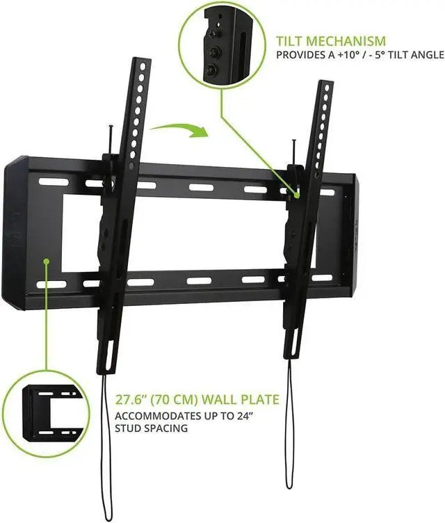 Low profile design sits less than 2" from wall and provides +10/-5Degree tilt, with locking screw