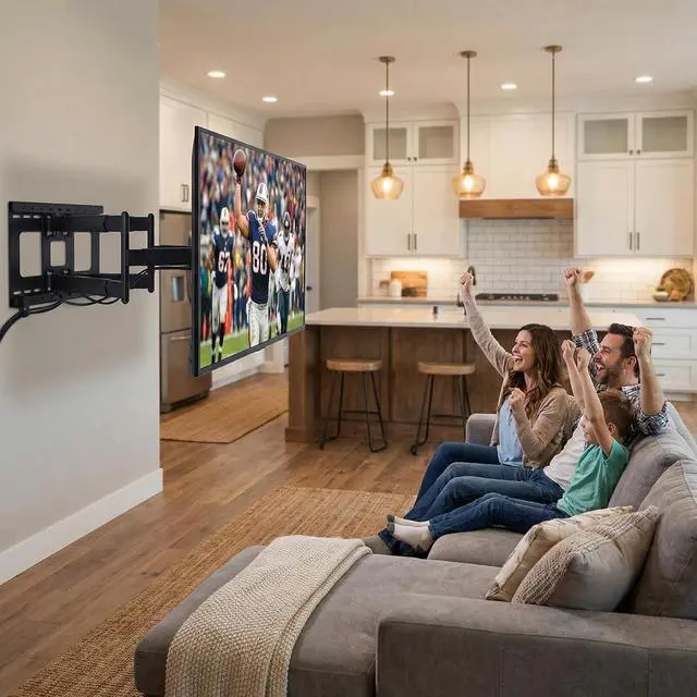 Large TV Bracket with Commercial-Grade Durability & Stability: Dual stud construction for stronger articulating TV wall mount. Supports TVs up to 120 lbs.