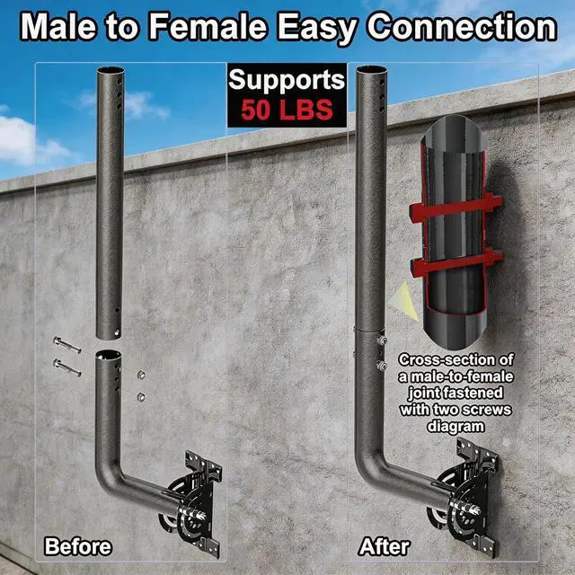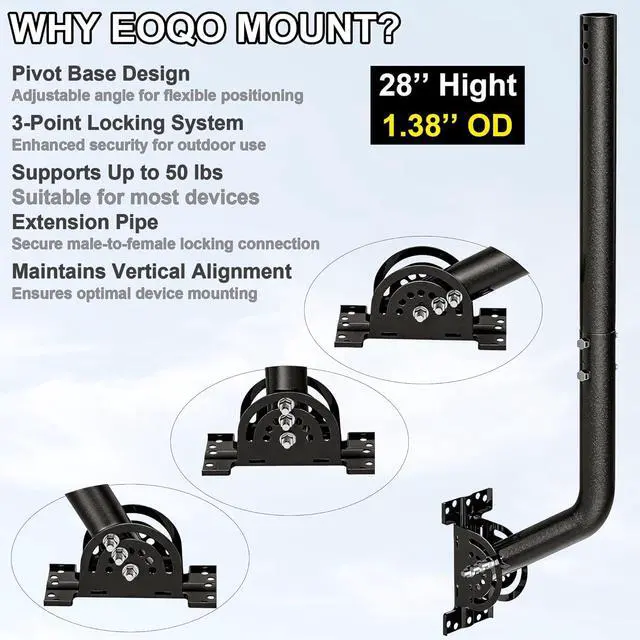Improved Stability: The universal antenna mount bracket features a three screw locking design, providing enhanced stability and outstanding support for devices weighing over 50LB. This robust design ensures secure installation and long-term performance, optimizing signal reception and connectivity.