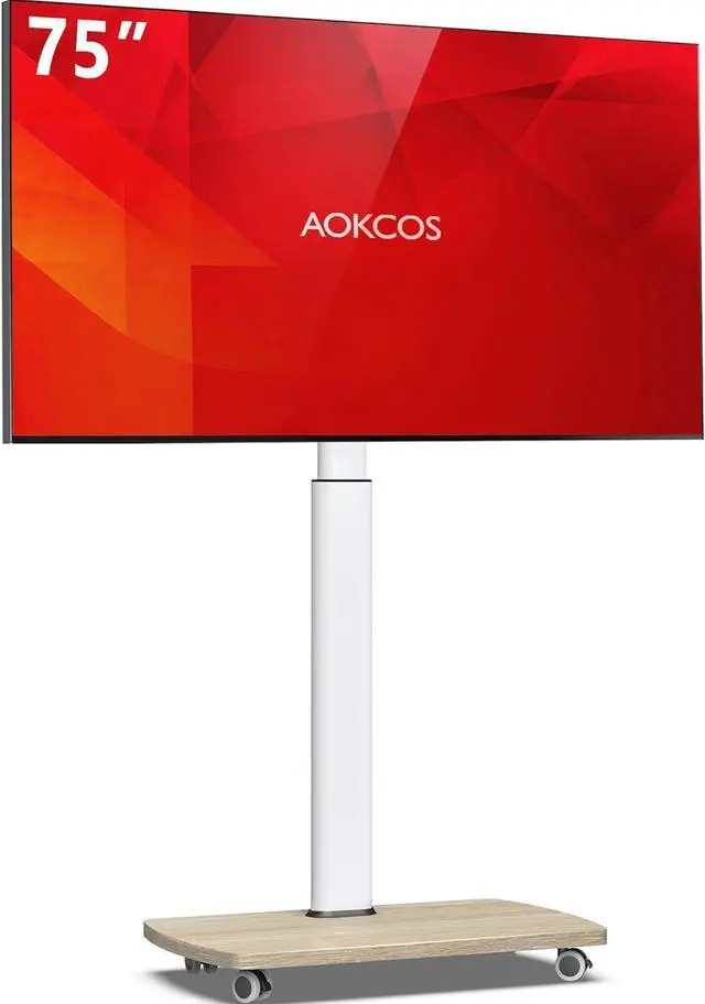 Quick & Easy InstallationAOKCOS 75 inch mobile TV cart is designed for simplicity. In order to solve the common problem of difficult installation, we have developed this super easy installing rolling TV stand, you do not need to face different models of accessories, referring to our detailed installation manual, just a few simple screws can be quickly completed in 15 minutes!