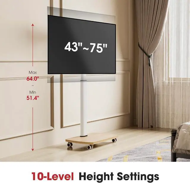 Get a better view from any spotWant a perfect viewing angle? This portable TV stand on wheels offers 10-levels height adjustment (min 51.4 to max 64), 25° left/right swivel mount and 10° to -2° tilt function. Why not enhance your viewing experience with a tv cart that adapts to your needs?
