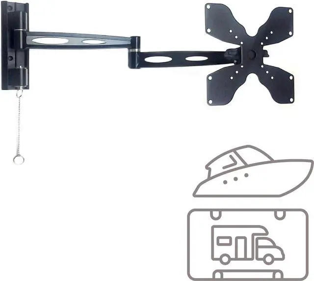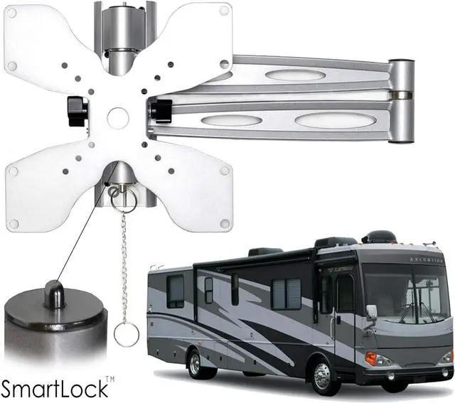 The 404L Locking Portable Cantilever Mount articulates with a duel hinge arm that extends 25". It has a spring loaded locking pin to secure your LCD, LED Screen or monitor in place when your vehicle is in motion. Simply pull the pin to unlock and swivel into place for perfect viewing.