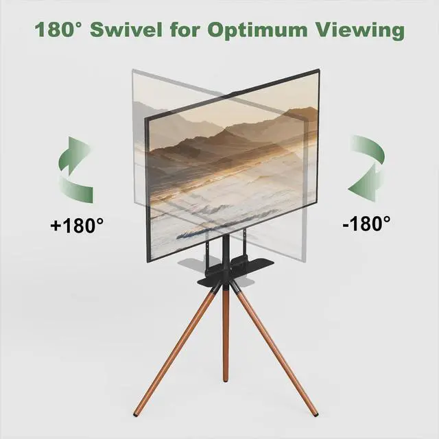 Swivel & Height Adjustable: The TV easel features 180° swivel left and right to help you find the optimal viewing angle for all types of TV screen panels. Raising or lowering your TV to an ergonomic height along the 23.8 " center pole by securing the snap locking collar, to create comfortable visual experience