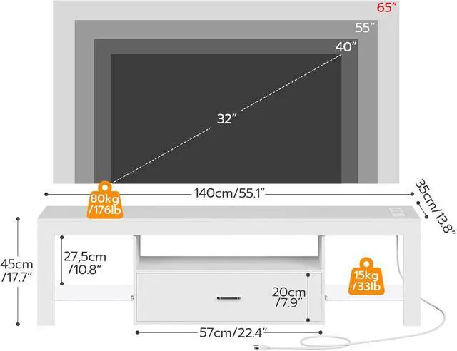 Various Light Modes: Your life needs a treat! Our LED TV stand has 24 different colors and 4 modes for you to choose from. You will find your preferred light to add the atmosphere for the precious moments in your birthdays, holidays, or daily life