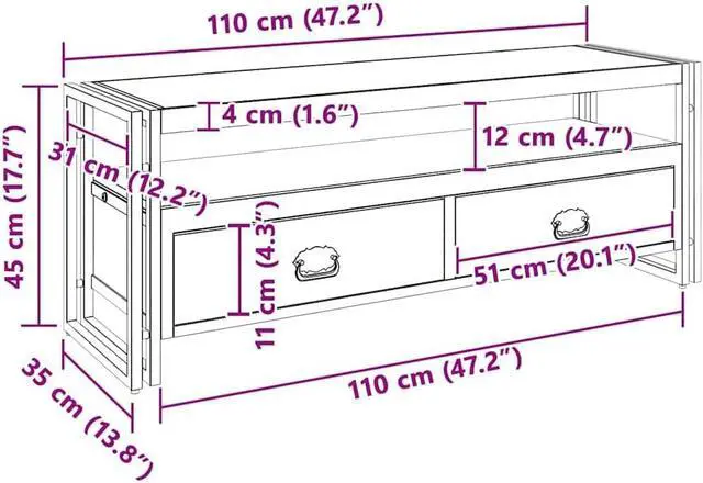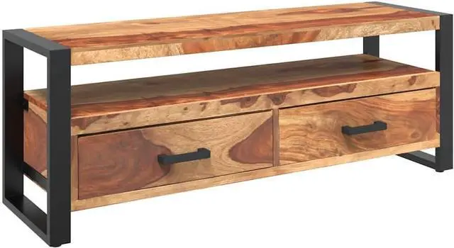 Quality Material: This TV cabinet is constructed from solid wood, known for its rich grain and durability, as well as a strong powder-coated steel frame