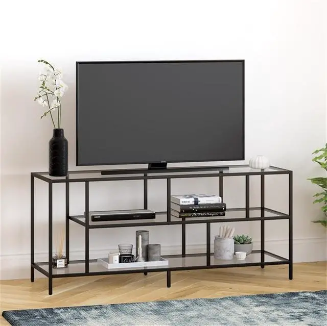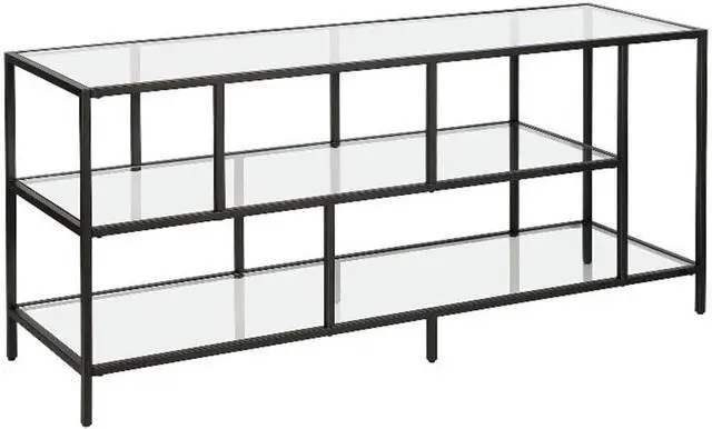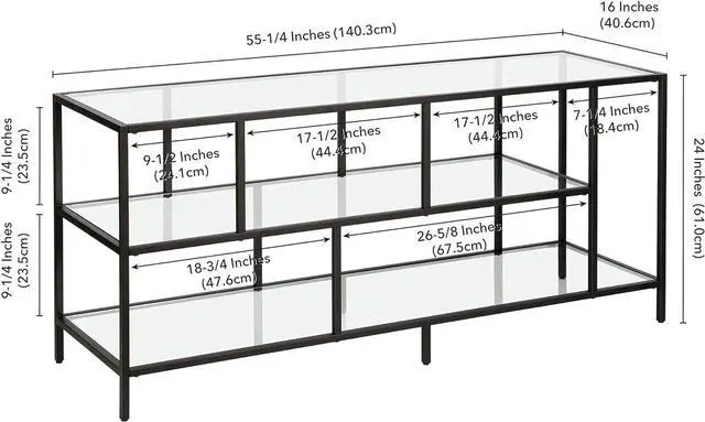 Two Open Display Shelves: Tempered glass shelves provide storage for media components, books, or decorative pieces.
